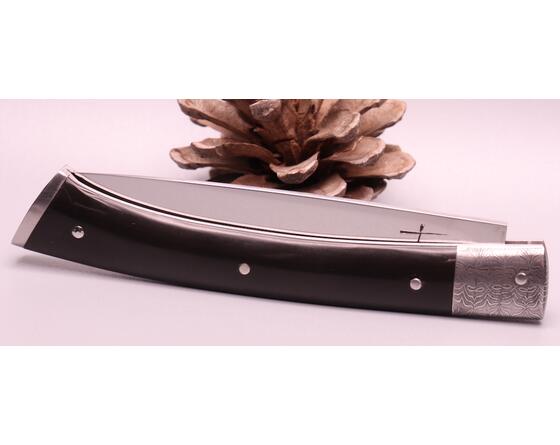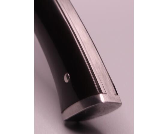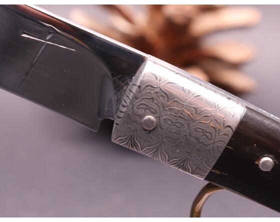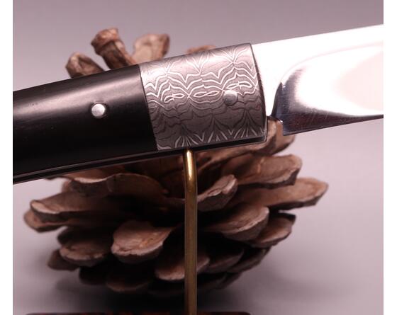La ressort est forgé dans la masse pour former une mitre arrière, c'est une des particularité des couteaux de Daniel Marlot. Sa signature.