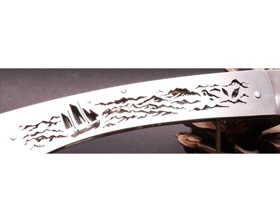 Pliant par Daniel Marlot Gravure Sirène Bateau Manche Inox Marlot Daniel - Couteau de Toto - 33619