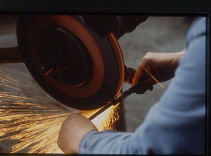 Dans nos ateliers, nous avons des tourets, des back-stands qui nous permettent de polir l'acier, le bois, le plastique, de monter des manches, de polir et façonner le tranchant des couteaux. Chaque ouvrier est spécialisé dans une opération : polissage - montage - polissage au fin - finition.